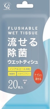 ■【説明】:トイレに流せるウエットティシュです。20枚入り。無香料、パラベンフリーです。