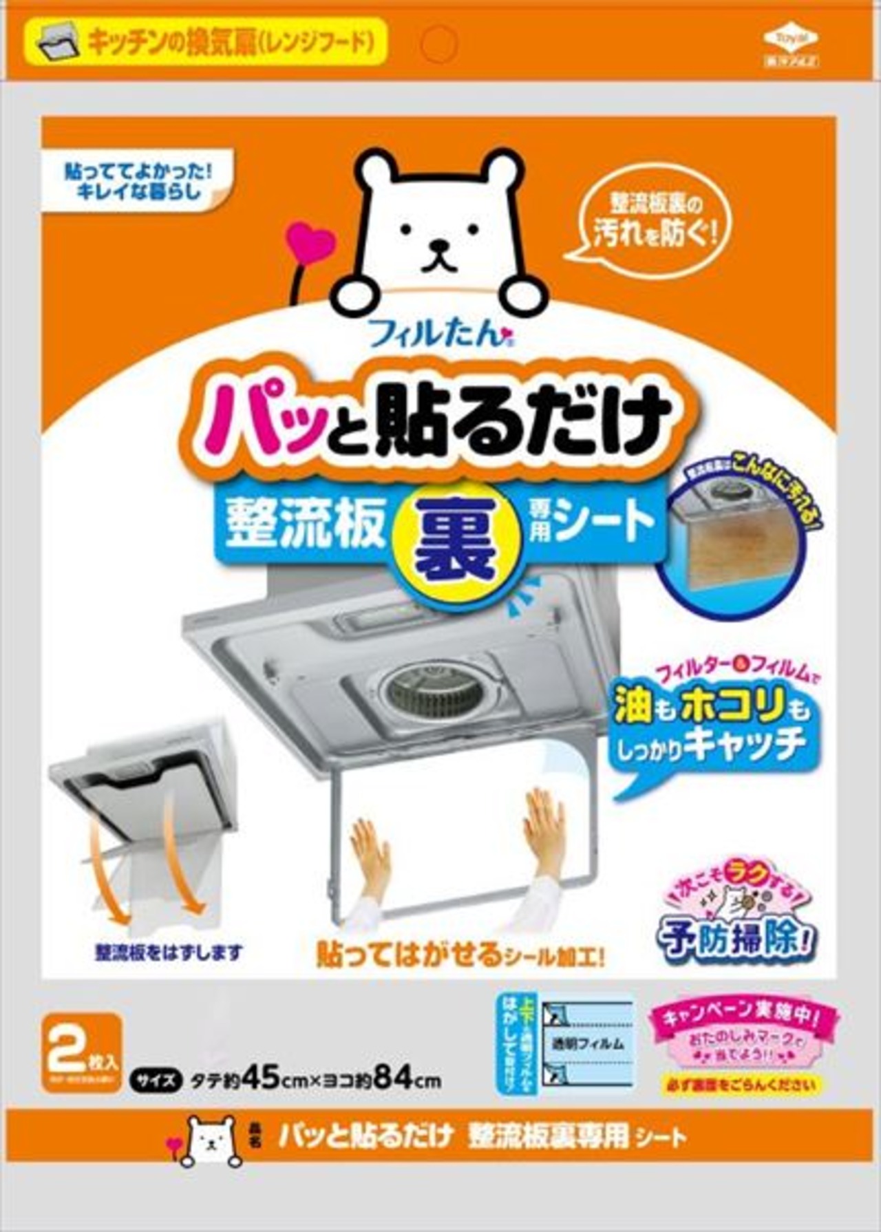 ■【説明】:整流板の裏側に溜まる油やホコリ汚れを防ぐ。粘着タイプのフィルターなので、取付け簡単。中心部のフィルムを残して使うことで、フィルターとフィルムの二重構造で油を整流板に通さない。機器のサイズに合わせて自由にカット。