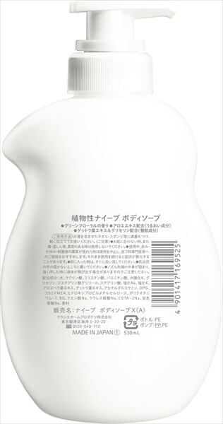 ■【説明】:●アロエエキス(うるおい成分)配合。すべすべ素肌に。●着色料・鉱物油・シリコン・パラベン・アルコール不使用。●アレルギーテスト済み。●お子様のデリケートな肌もやさしく洗いあげます。