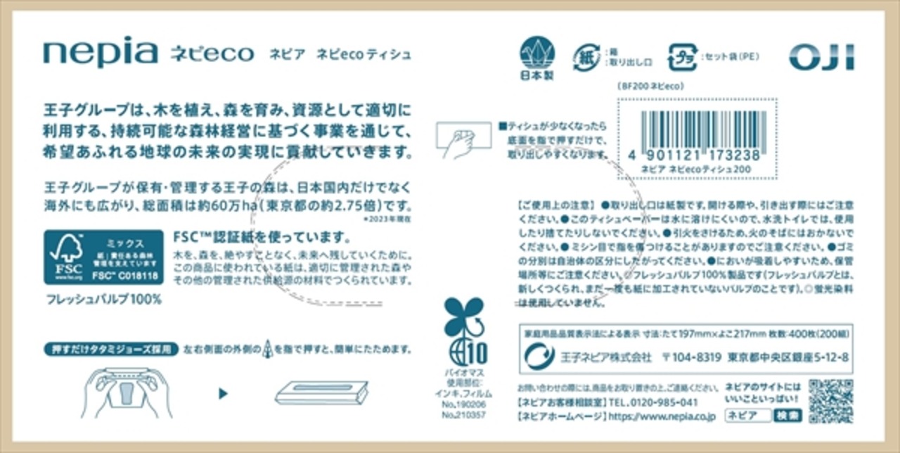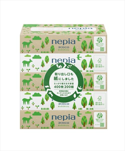 ■【説明】:●サステナブルな紙からできた取り出し口●使用後は箱のままたためる「新タタミジョーズ」採用●外装フィルムと持ち手は、植物由来原料のバイオマスフィルムを採用●たっぷり使える200組●フレッシュパルプ100%
