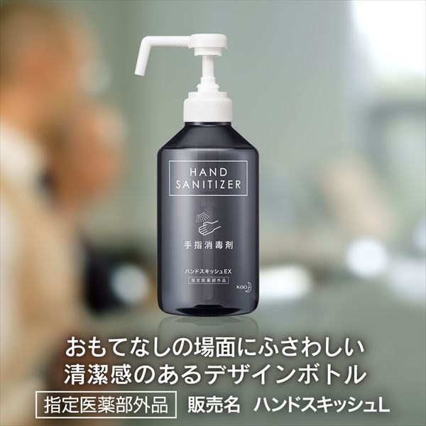 ■【説明】:飲食店・ホテル・公共施設など様々な場面でお使いいただける指定医薬部外品の手指消毒剤です。おもてなしの場面にふさわしいスタイリッシュなデザインボトル。ベンザルコニウム塩化物0.05w/v%を有効成分とし、ウイルス・細菌に効果があります。すばやく乾き、乾いた後はサッパリ、ベタつきません。保湿剤(グリセリン)配合。消防法上の危険物に該当しません。エタノール濃度(溶剤):65vol%