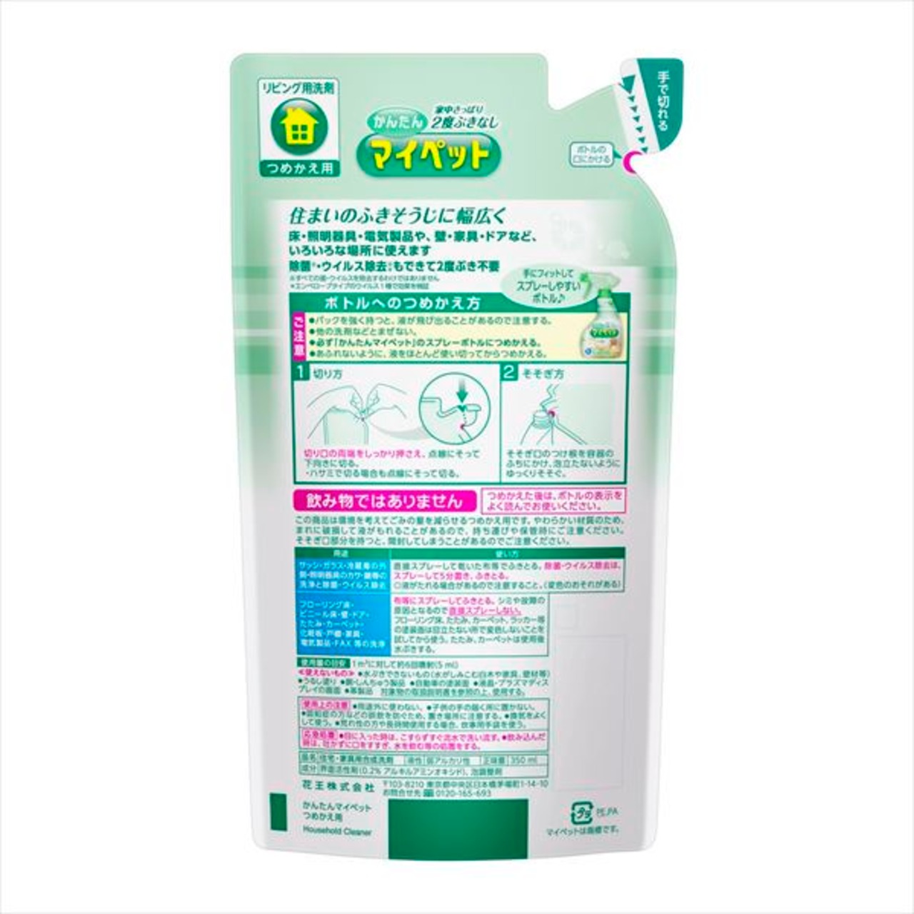 ■【説明】:床・家具・ドア・照明器具など、住まいのいろいろな所に使えるふきそうじ用洗剤です。除菌※・ウイルス除去※*もできて、2度ぶきが必要ありません。 ※すべての菌・ウイルスを除去するわけではありません *エンベロープタイプのウイルス1種で効果を検証