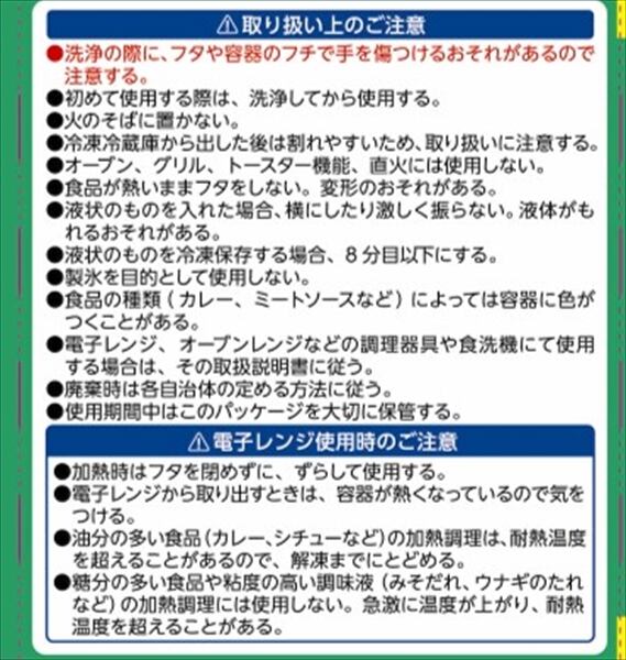 ●本体、フタとも耐熱温度は140℃、耐冷温度は−20℃で、食品の冷凍保存から電子レンジ加熱まで幅広く使えます。