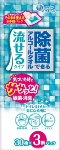 【まとめ買い】エリエール 除菌できるアルコールタオル 流せるタイプ30枚×3P 【大王製紙】 【ウェットティッシュ】【HRM-18108743-1】×12点セット