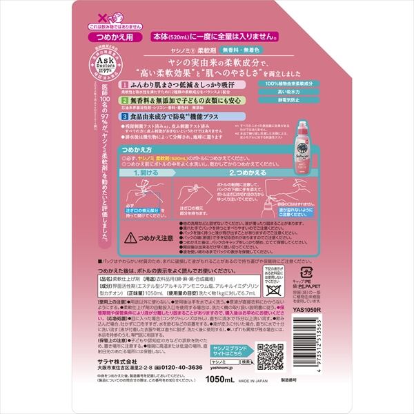 【まとめ買い】ヤシノミ柔軟剤 詰替用 1050mL 【 サラヤ 】 【 衣料用洗剤・自然派 】【HRM-19890657-1】×8点セット