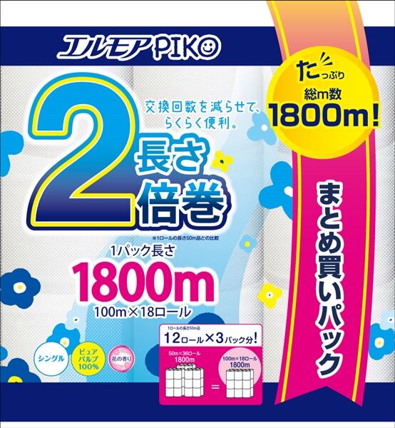 【まとめ買い】エルモアピコ2倍巻18ロールシングル 100m 【 カミ商事 】 【 トイレットペーパー 】【HRM-19890626-1】×4点セット