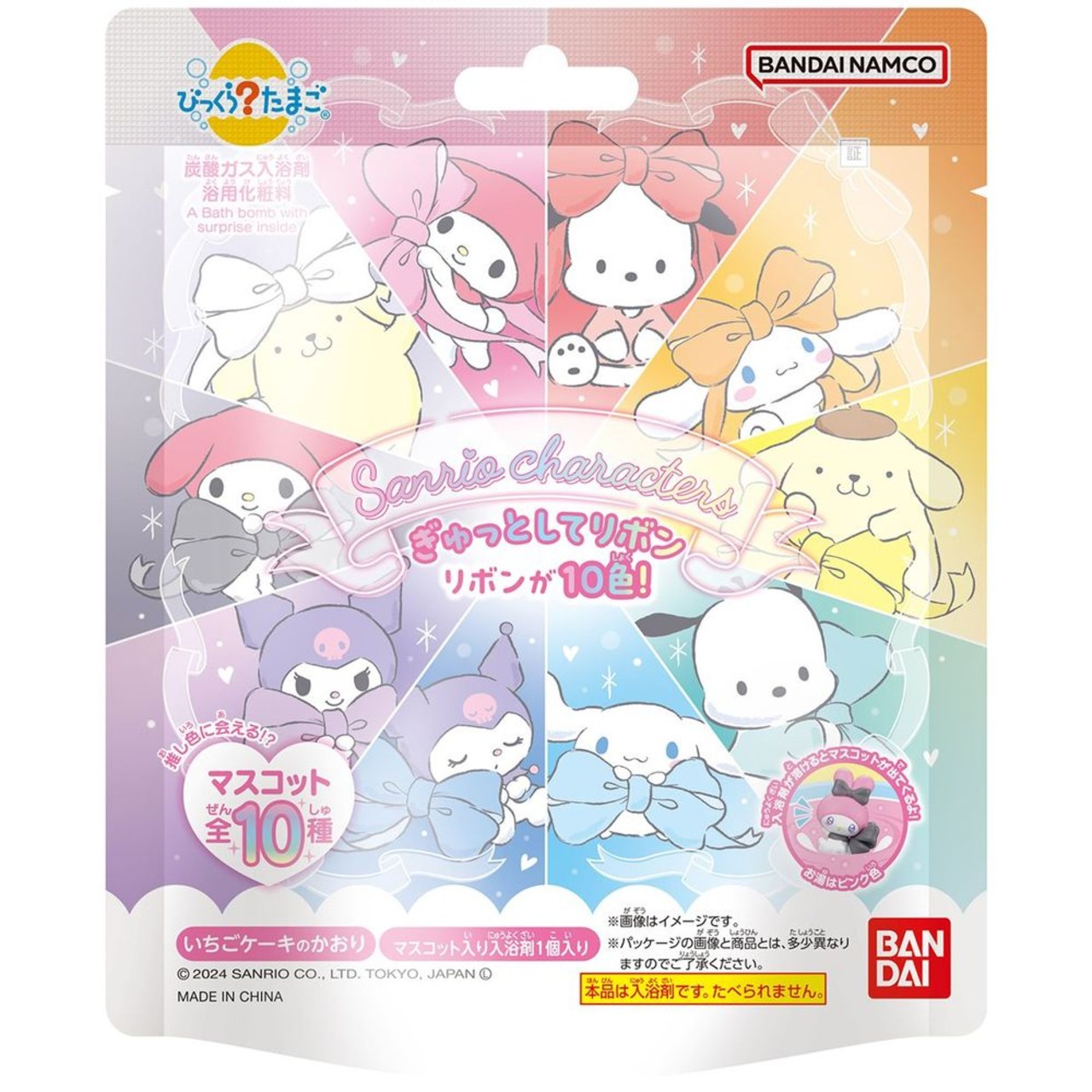 ■【説明】:サンリオの人気キャラクター5キャラをそれぞれ2色展開!大ボリュームの全10種展開となっております!入浴剤はいちごケーキの香りで入浴剤が溶けるとピンク色のお湯になります。