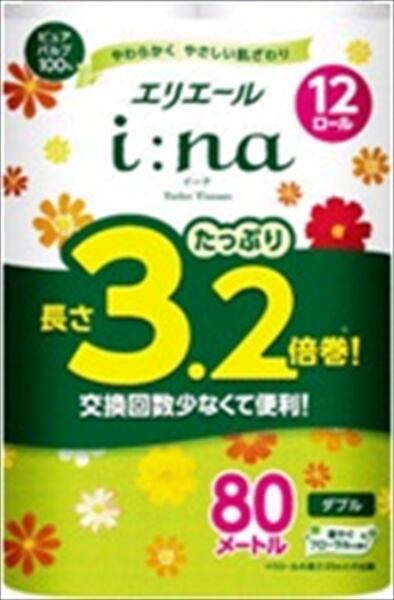 【まとめ買い】エリエールi:naトイレットティシュー3.2倍巻12R(ダブル) 【大王製紙】【HRM-20839274-1】×4点セット