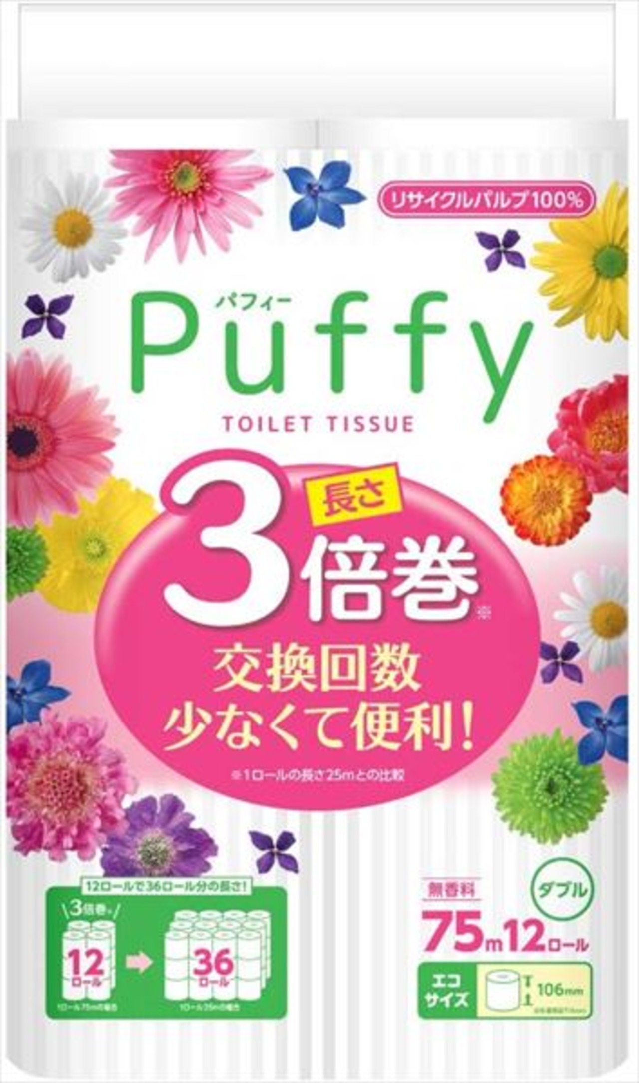 【まとめ買い】パフィー3倍巻 12R(ダブル) 【 大王製紙 】 【 トイレットペーパー 】【HRM-22522048-1】×6点セット