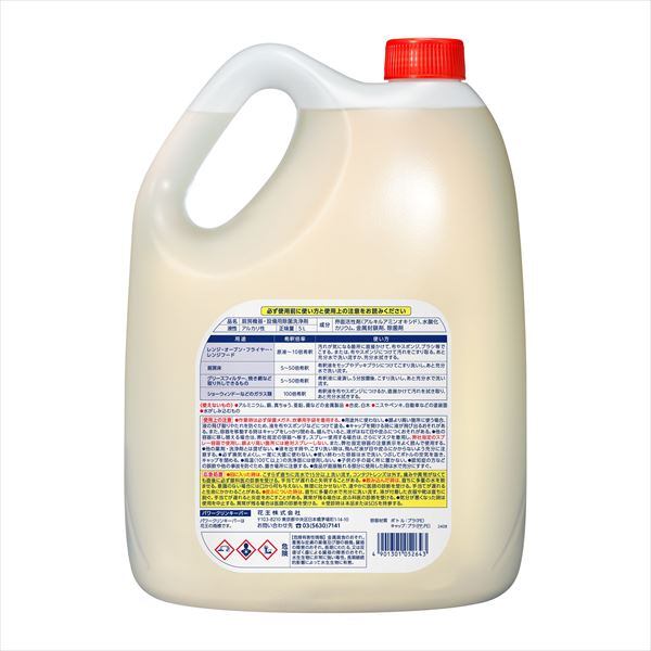 ■【説明】:厨房機器・設備のしつこい汚れもスッキリ落とす、アルカリ性の除菌洗浄剤です。優れた洗浄力で、フライヤーなど加熱調理機器のこびりついた油汚れから厨房床のしつこい汚れまで、しっかり落とします。使用場所や汚れの程度に合わせて、原液でも水でうすめても使えます。洗浄と同時に除菌ができます。(除菌成分:第4級アンモニウム塩配合)