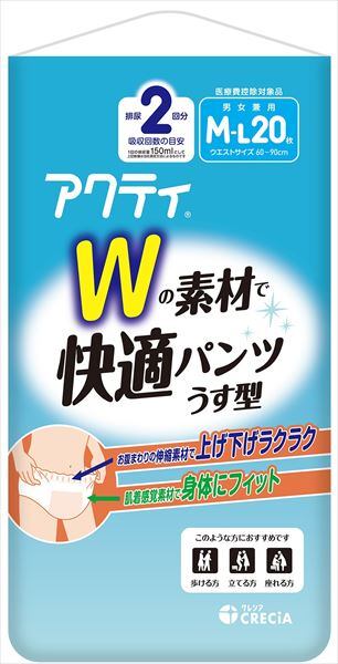 【まとめ買い】アクティ Wの素材で快適パンツ うす型 M−Lサイズ 【 日本製紙クレシア 】【 大人用オムツ 】【HRM-22440490-1】×4点セット