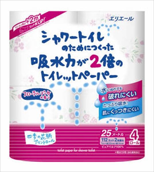 【まとめ買い】エリエール シャワートイレのためにつくった吸水力が2倍のトイレットペーパー 4ロール ダブル【HRM-18876425-1】×24点セット