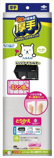 ■【説明】:厚手2倍で油汚れをしっかりキャッチし長持ち。ミシン目付で簡単カット。フリーサイズで、60cm・75cm・90cmどの幅にも無駄なくつけられる。とりかえ専用タイプ。