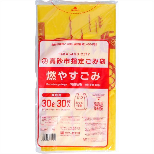 ■【商品名】: 【まとめ買い】GTS31 高砂市可燃 とって 30L 30枚×20点セット