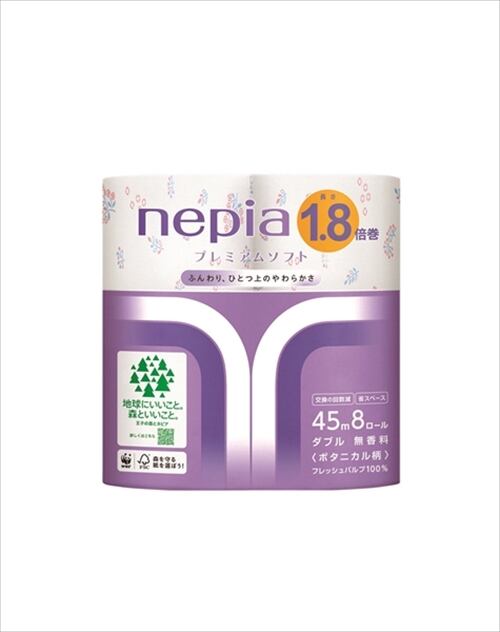 【まとめ買い】ネピアプレミアムソフトトイレットロール1.8倍巻8ロールダブルボタニカル柄45M【HRM-17772149-1】×8点セット