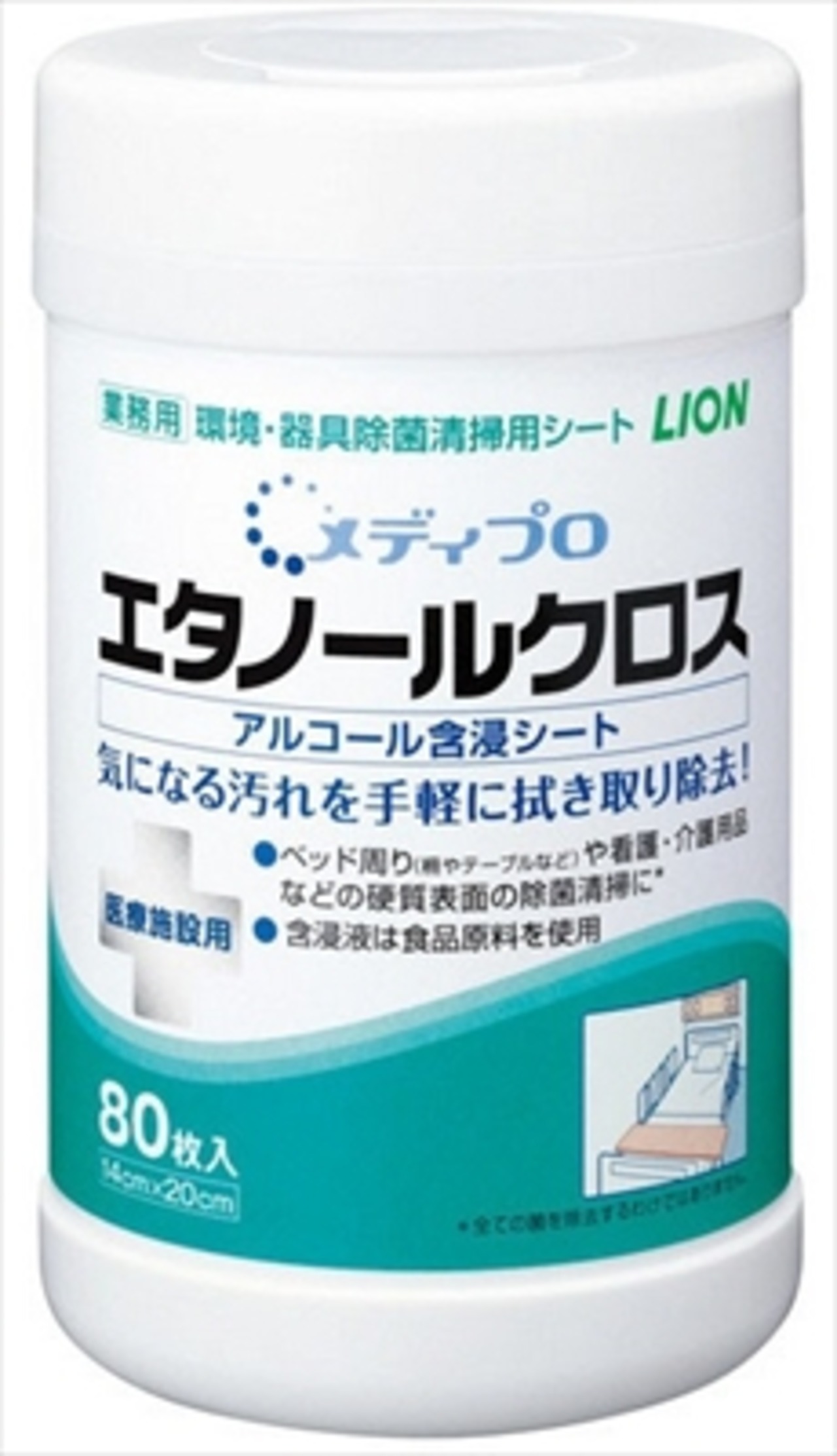 ■【説明】:エタノールを不織布に含浸した施設環境・器具清掃用ウエツトシートです。含浸液は食品原料(食品添加物)と精製水を含浸。本体、80枚入り。