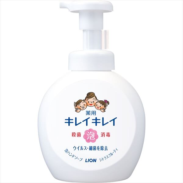 ■【説明】:キレイキレイ泡ハンドソープから通常本体の2倍入った“本体大型サイズ”新登場!面倒なつめかえが今までの半分の回数(2回に1回)で済みます。●バイ菌を増やさない抗菌ポンプヘッド採用。●きちんと殺菌し、バイ菌から手肌を守ります。●きめ細かな泡が汚れをすみずみまでキャッチし、しっかりと落とします。●すばやい泡切れ、ぬるつかない洗い上がり。【手に香りが残りにくいシトラスフルーティの香り】