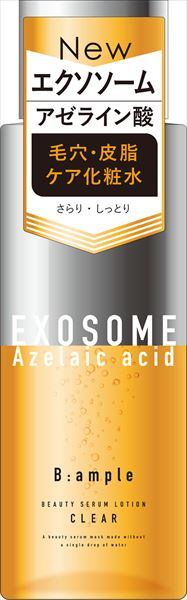 ■【説明】:最先端のスキンケア成分、エクソソーム×アゼライン酸配合の毛穴対策化粧水。皮脂・毛穴詰まりに集中アプローチし、つるんと触り心地の良いなめらかな素肌に導く。無香料・無着色。