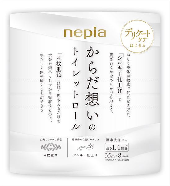 ■【説明】:●ノーエンボスの「シルキー仕上げ」なので、摩擦が少なく、こすれてもなめらかで心地よい肌ざわりです●丈夫でしっかり吸収の「4枚重ね」なので、軽くあてるだけで水分を素早くしっかり吸収し 肌に負担をかけません●フレッシュパルプ100%製品です●取っ手は持ちやすい1つ穴●バイオマスインキ、バイオマスフィルムを採用
