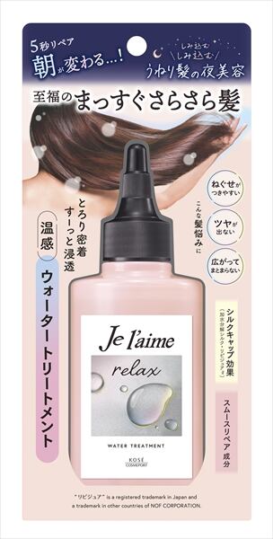 ■【説明】:朝が変わる、しみ込む夜美容で、うねりが気になる髪も扱いやすいストレート髪にみちびくウォータートリートメント。スムースリペア成分・シルクキャップ配合で、指どおりの良い至福のまっすぐさらさら髪に。アロマティックジャスミンの香り。