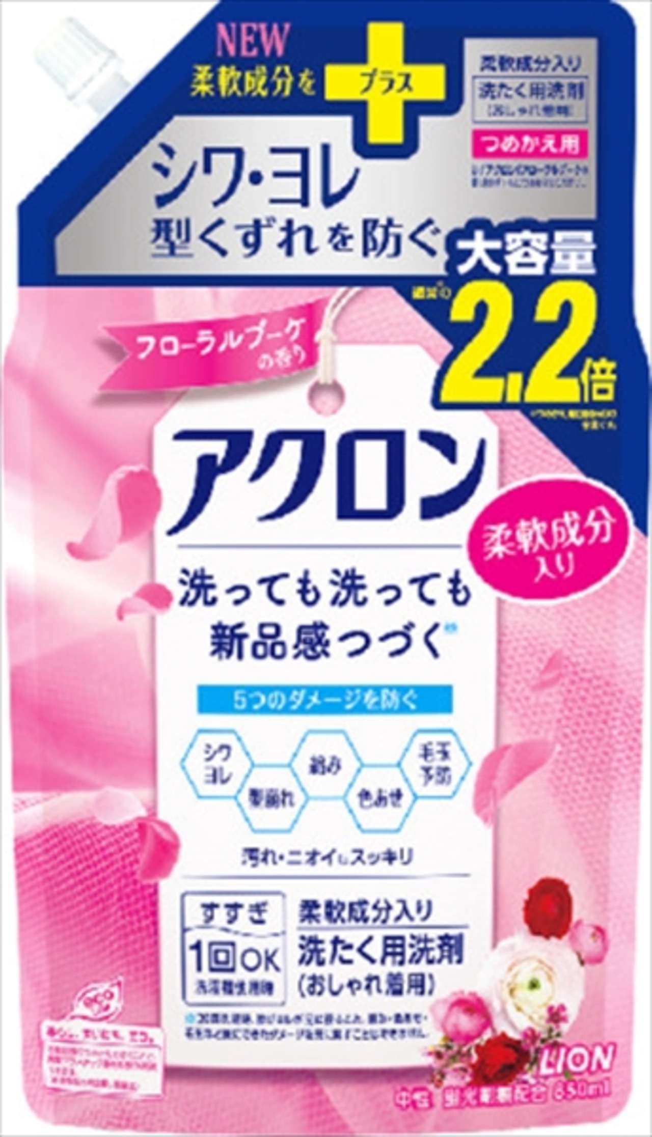 ■【説明】:新たな柔軟成分配合!すすぎ1回OKだから、もっとダメージ防げる。洗っても洗っても新品感続く※、柔軟成分入りおしゃれ着用洗剤。キレイ修復洗浄で、伸びヨレを整え汚れもスッキリ。カタチ(型くずれ・縮み)だけでなく、毛玉・シワ・色あせ・テカリも防ぐ。心華やぐフローラルブーケの香り。※20回洗濯時、伸びヨレが元に戻ること。縮み・色あせ・毛玉など既にできたダメージを元に戻すことはできません。