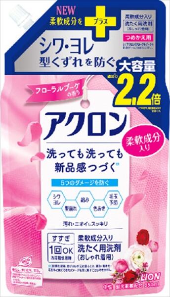 【まとめ買い】アクロンフローラルブーケの香り つめかえ用大 850ml 【 ライオン 】 【 衣料用洗剤 】【HRM-18848861-1】×12点セット
