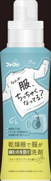 ■【説明】:乾燥機で服が縮むのを防ぐ洗剤。洋服の縮み、毛羽立ち、色あせを軽減。衣類ケア処方でお洋服の見た目から、清潔な印象に。乾燥機で香り飛びしない清潔感のあるウォータリーブーケの香り。生乾き臭をニオイの元から断絶。人と会った時のニオイ不安を解消。自動投入対応。