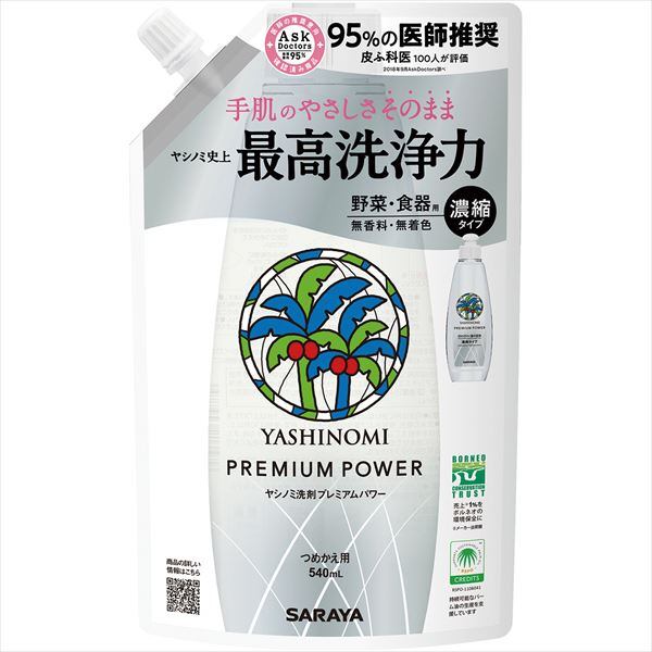 【まとめ買い】ヤシノミ洗剤 プレミアムパワー 詰替 540mL 【 サラヤ 】 【 食器用洗剤 】【HRM-22529789-1】×18点セット