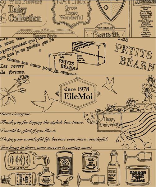 ■【説明】:一般的なティシューと比べ嵩が高く、ふんわり柔らかなティシュー。厳選されたピュアパルプ100%を使用。懐かしいレトロでポップな気持ちを楽しめるデザイン。