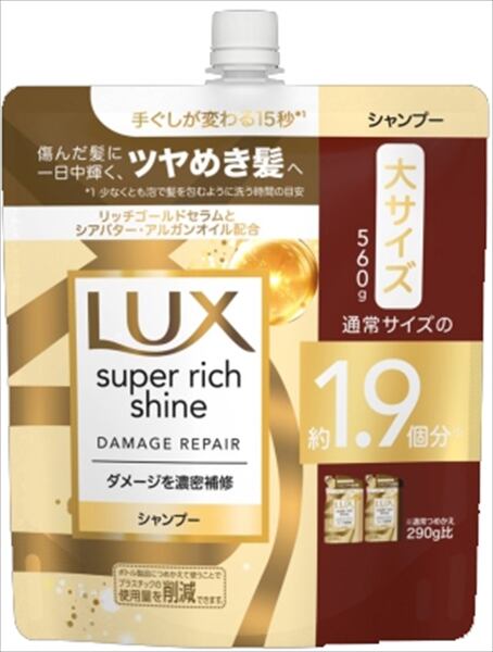 【まとめ買い】ラックス スーパーリッチシャイン ダメージリペア 補修シャンプー つめかえ用 560g【HRM-18848753-1】×9点セット