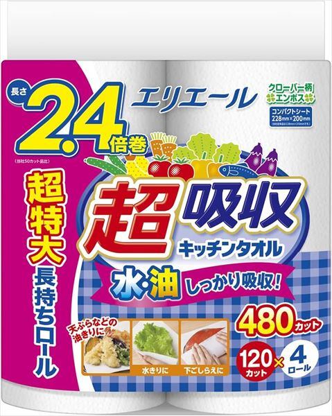 【まとめ買い】エリエール超吸収キッチンタオル4R(120カット) 【 大王製紙 】 【 キッチンタオル 】【HRM-22522309-1】×12点セット