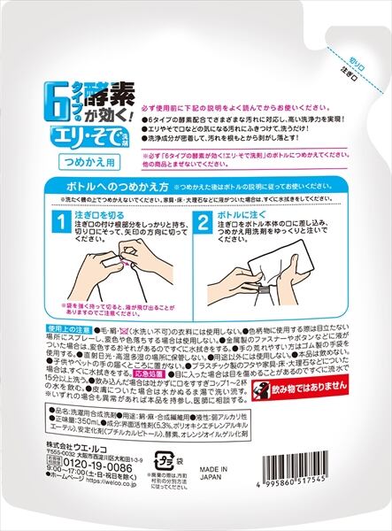 ■【商品名】: 【まとめ買い】6タイプの酵素が効くエリ・そで洗剤 詰替350ml×24点セット