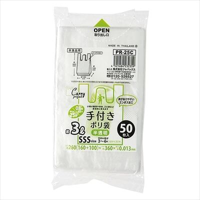 ■【商品名】: 【まとめ買い】PR25C手付きポリ袋SSS半透明 50枚×60点セット