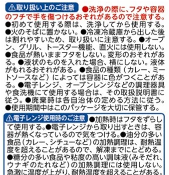 ■【説明】:軽くて丈夫なプラスチック製保存容器です。耐熱温度140℃耐冷温度−20℃で、冷凍保存からフタごと電子レンジ加熱までできます。異なるサイズ同士でも積み重ねて保存でき、使わない時は重ねて収納できます。底面とフタの凹凸で重ねた時にずれにくくなっています。フタの中央部分を押すとパチンと閉まって、しっかり密閉します。中身がひと目でわかる半透明の容器です。容器側面に目盛りが付き内容量が確認できます。