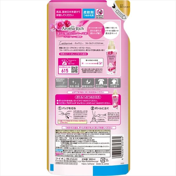 【まとめ買い】ソフランアロマリッチ キャサリン つめかえ用 380ml 【 ライオン 】 【 衣料用洗剤 】【HRM-20018213-1】×20点セット