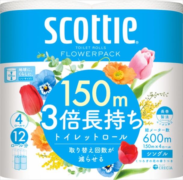 【まとめ買い】スコッティ フラワーパック 3倍長持ち4ロール (シングル) 【日本製紙クレシア】【HRM-19973018-1】×12点セット