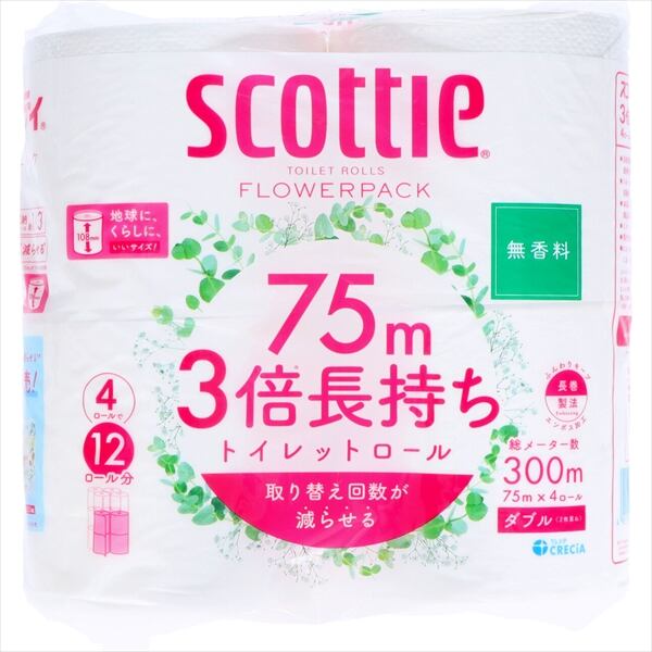 【まとめ買い】スコッティ フラワーパック3倍長持ち4ロール(ダブル)〈無香〉【トイレットペーパー】【HRM-14768944-1】×12点セット