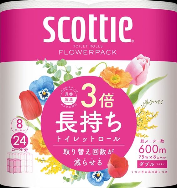 【まとめ買い】スコッティ フラワーパック 3倍長持ち 8ロール(ダブル)【日本製紙クレシア】【トイレットペーパー】【HRM-14768945-1】×6点セット