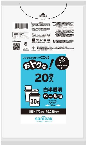 【まとめ買い】CU39 オトクナ 30L 白半透明 20枚 【 日本サニパック 】 【 ゴミ袋・ポリ袋 】【HRM-20760186-1】×30点セット