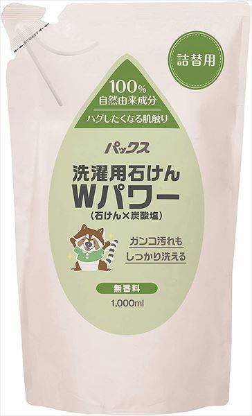 ■【説明】:合成化学物質を使用しない洗濯石けんです。ガンコ汚れもしっかり洗える純石けんと炭酸塩のWの洗浄効果で、汚れに強くしっかり洗えます。パックス洗濯用液体石けんWパワー本体に詰め替えてご使用ください。