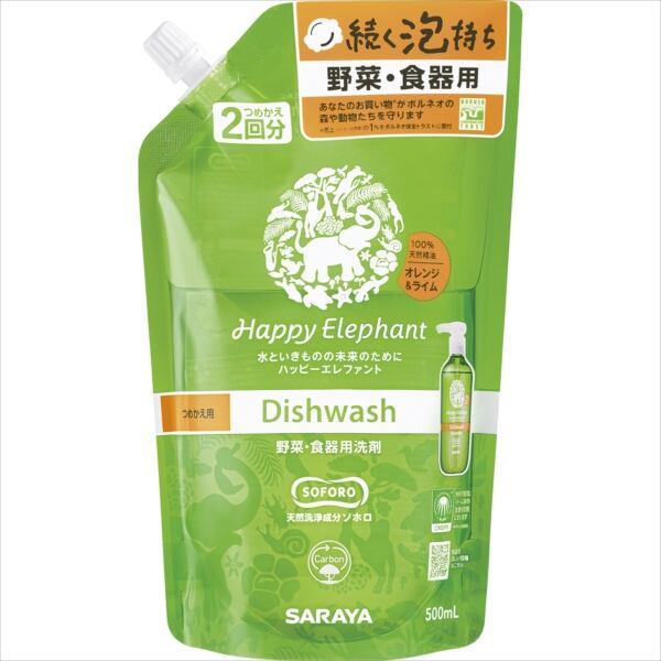 【まとめ買い】ハッピーエレファント 食器用洗剤 オレンジ&ライム 詰替 500mL 【サラヤ】 【食器用洗剤】【HRM-18048308-1】×18点セット