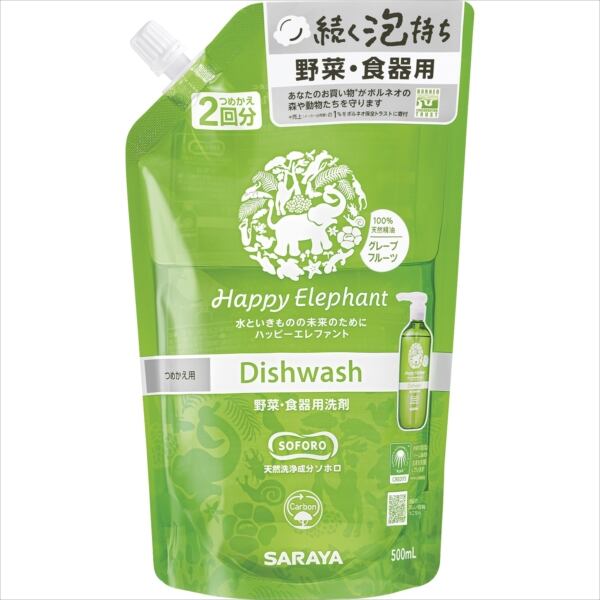 【まとめ買い】ハッピーエレファント 食器用洗剤 グレープフルーツ 詰替 500mL 【サラヤ】 【食器用洗剤】【HRM-18048307-1】×18点セット