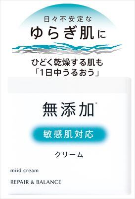 ■【説明】:日々不安定で乾燥や肌あれを繰り返す、敏感に傾きがちな「ゆらぎ肌」の方へ。厳選植物成分「リペアコンプレックスRB」配合。肌のバリア機能をサポートし、モイスチャーバランスの整ったゆらぎにくい肌へと導きます。5つの無添加(パラベン・アルコール・合成着色料・合成香料・紫外線吸収剤)で必要なものだけを肌に届けます。うるおいをとじこめ、1日中乾燥しない肌に導くマイルドクリーム。やさしい植物の香り。
