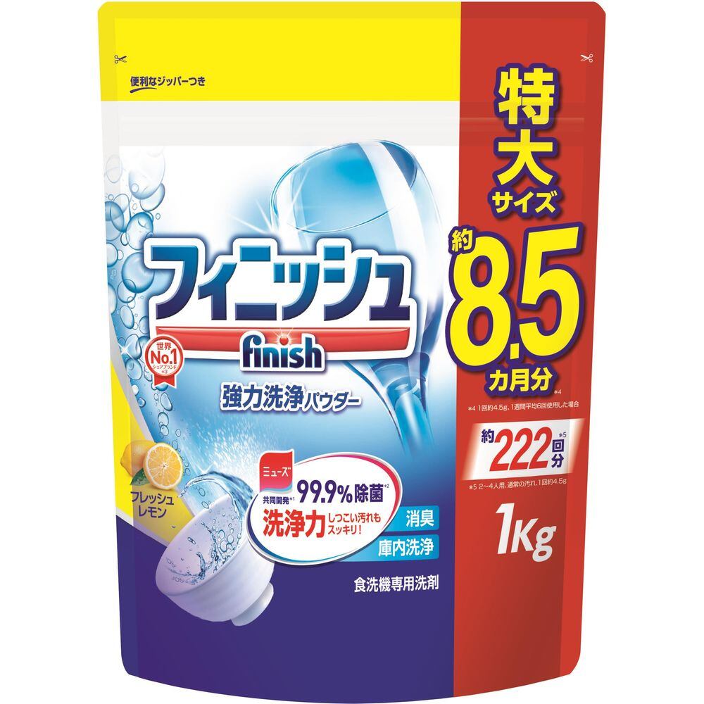 ■【説明】:食洗機洗剤ユーザーから求められている洗浄力と安全性(安心)の両方を兼ね備えた、新しいフィニッシュ「パワー&ピュア」。余分な科学成分をカットしつつ、99.9%除菌できます。庫内までリフレッシュできるレモンの香り。1kg大型バリューパック、パウダー詰替。