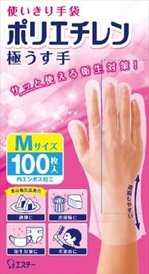 【まとめ買い】使いきり手袋 ポリエチレン 極うす手 M 半透明 100枚 【 エステー 】 【 使い捨て手袋 】【HRM-8459171-1】×24点セット