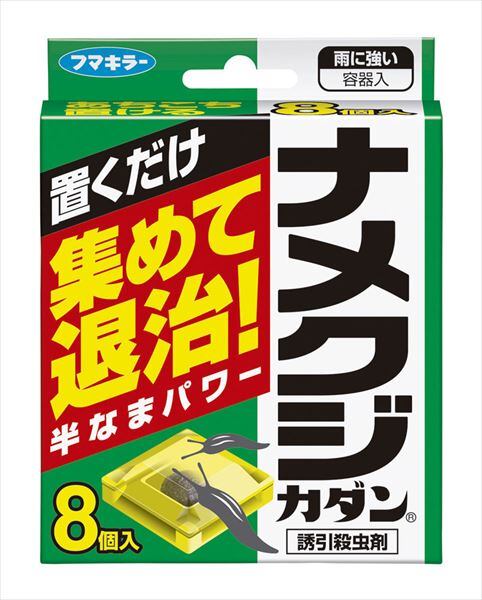 ■【説明】:〇有効成分:メタアルデヒド●置くだけでナメクジを寄せ集め、退治します。●誘引・駆除効果のあるメタアルデヒドを主成分としています。●雨や散水に強い容器設計で、長期間効力が持続します。●薬剤に触れない安心容器入り。●設置後、約1〜3ヶ月間効果があります。