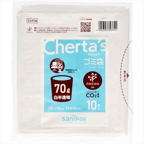 【まとめ買い】CH74 大型ポリ袋70L 白半透明 【 日本サニパック 】 【 ゴミ袋・ポリ袋 】【HRM-22522224-1】×20点セット