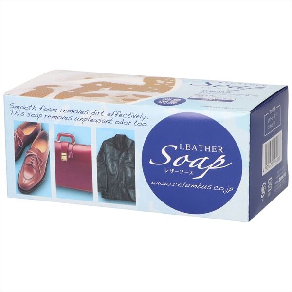 ■【説明】:革製品をクリーニングする石けんです。※スムースレザー専用 消臭効果。なめらかな泡が、汚れをしっかりと落とします。ホホバオイル配合で、クリーニングで失われる油分を補い、しっとりとした風合いを保ちます。植物系消臭成分のカキタンニン配合で、革製品についたイヤなニオイを除去します。