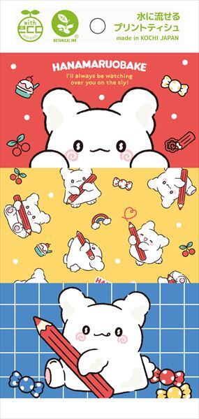 ■【説明】:今日もがんばったあなたにハナマルをくれる、不思議なおばけ「はなまるおばけ」の水に流せるプリント入りポケットティシュです。2023年のサンリオネクストカワイイプロジェクトで1位となり、キャラクターデビュー。