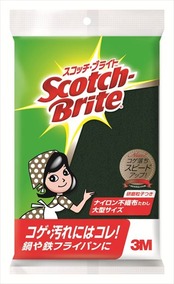 ■【説明】:不織布に研磨粒子を塗布したキッチン用たわし。調理器具のガンコな汚れも素早くスッキリ?キッチン用ナイロン不織布たわし。コンロ・オーブン・中華鍋などのガンコなコゲ汚れもスッキリ落とします